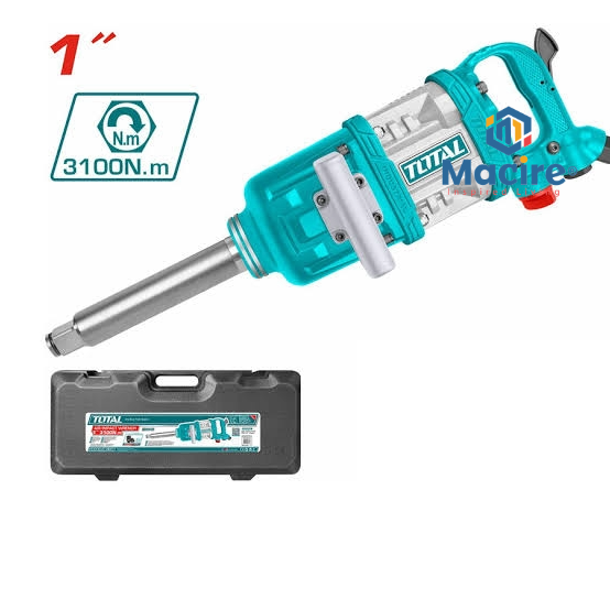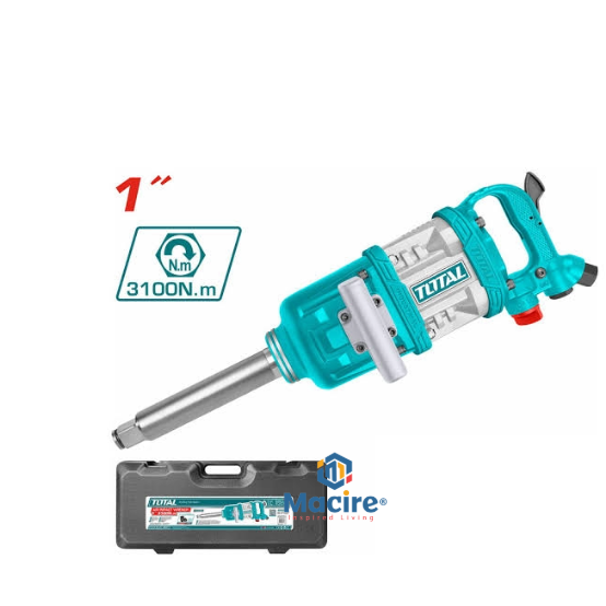 The TOTAL 1″ Air Impact Wrench – TAT40111 is a professional-grade pneumatic powerhouse engineered for the toughest industrial and automotive applications. Built under the Macire Heavy-Duty Standard, this wrench delivers a massive 3100Nm of maximum torque — giving you the brute force needed to loosen or tighten even the most stubborn bolts, nuts, and fasteners on trucks, heavy machinery, and construction equipment.
