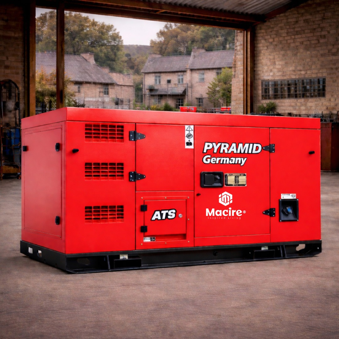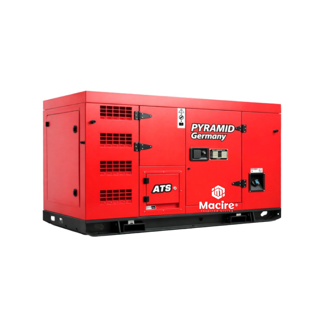 The 79kVA Pyramid Germany Silent Diesel Generator is a high-capacity backup power system designed for industrial and large-scale commercial applications. Built with a water-cooled diesel engine and enclosed in a soundproof canopy, it delivers stable, efficient, and continuous power while maintaining low noise levels. Its ATS-ready configuration allows seamless integration with automatic transfer systems, ensuring immediate response during power outages.